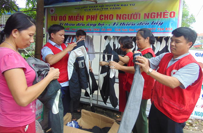 Đặc biệt, từ tháng 6/2017, CLB còn lập tủ đồ miễn phí cho người nghèo. Tủ đồ được đặt tại gia đình chị Vũ Thị Thuận, ngay cổng Bệnh viện Đa khoa huyện. Chị Đỗ Thị Hương, thành viên CLB chia sẻ: ý tưởng lập tủ đồ này của bọn mình đã được nung nấu từ rất lâu rồi. Nhưng vì còn vướng ở địa điểm, cách vận hành sự ủng hộ nên chưa thực hiện được. Với phương châm “Ai thừa đến ủng hộ, ai thiếu thì đến lấy”, từ khi đi vào hoạt động, tủ đồ miễn phí được sự ủng hộ nhiệt tình của bạn bè gần xa. Để cẩn thận cho việc theo dõi, duy trì, CLB dùng 2 cuốn sổ để ghi tên người nhận và người cho. Hầu như quần áo, đồ dùng mang đến đâu hết đến đó, người nhận được luôn vui vẻ, phấn khởi khiến chúng tôi thấy hành động của mình càng có ý nghĩa thêm. Không chỉ hỗ trợ vật chất mà qua những món quà nhỏ đó, chúng tôi còn tuyên truyền các hộ gia đình cần cố gắng, tự lực vượt qua khó khăn, vươn lên trong cuộc sống.